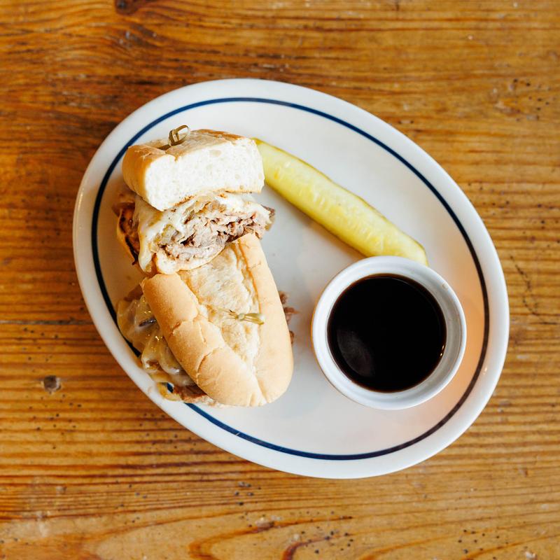 Thinly sliced prime rib, sauteed onions, & melted provolone cheese on a hoagie roll