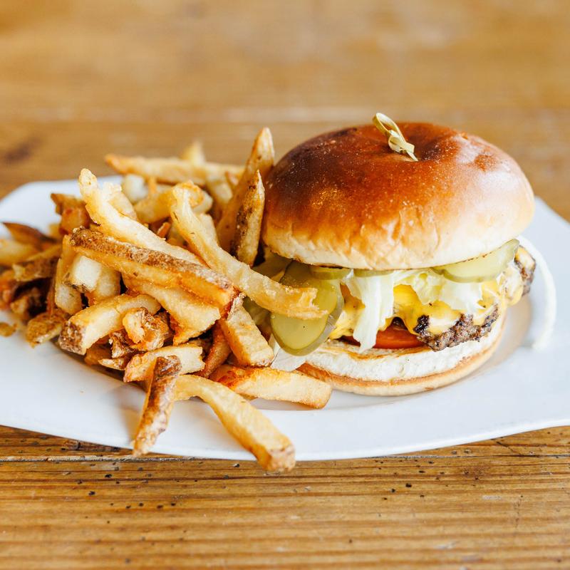 Lettuce, tomato, onions, pickles, & homemade pimento cheese on a butter toasted potato bun